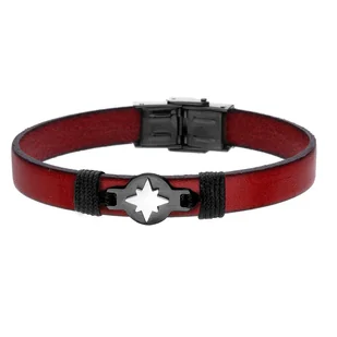 Bransoletka męska skórzana z czarną różą wiatrów z czerwonej skóry.
