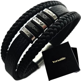 Dzięki możliwości umieszczenia imion, daty urodzin, imienin, narodzin dziecka, sentencji czy dedykacji, staje się niepowtarzalnym akcentem, który będzie bliski sercu obdarowanej osoby przez wiele lat. Precyzyjnie wykonany grawer gwarantuje trwałość, postaw na jakość Versatile. To nie tylko prezent na jedną okazję, to pamiątka na całe życie. Doskonała na urodziny, rocznicę, Dzień Ojca czy inne wyjątkowe momenty. Nasza bransoletka męska z personalizacją to wyjątkowy sposób na okazanie miłości, szacunku czy wdzięczności.