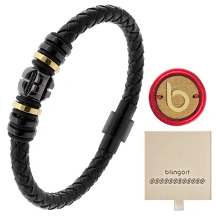 Bransoletka męska SKÓRZANA zdobiona PLECIONA złota Nowoczesny design z charakterem – połączenie plecionki, złotych detali i pierścieni tworzy wyjątkowy look, który wyróżnia Cię w każdej sytuacji. Personalizacja stylu – ruchome elementy pozwalają Ci zmieniać układ ozdób i dopasować bransoletkę do nastroju lub okazji. Magnetyczne zapięcie bez wysiłku – zapinasz ją błyskawicznie jedną ręką, a magnes robi całą robotę za Ciebie. Luksus w zasięgu ręki – stalowe pozłacane 24K złotem akcenty i skóra naturalna sprawiają, że czujesz jakość i klasę przy każdym założeniu. Długość: 21,5 Szerokość: