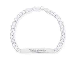 Męska bransoleta wykonana ze srebra najwyższej jakości oraz próby 925 z gładką blaszką idealną pod grawer Najwyższa próba srebra 925, zapewnia trwałość i świetny wygląd przez wiele lat Waga: 10,90 gram Rozmiar: 21 cm Szerokość bransoletki: 5 ,7 mm Grubość/Wysokość bransoletki: 1,7 mm Szerokość blaszki: