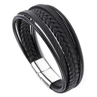 Bransoletka SKÓRZANA męska CZARNA skóra STAL STAL SZLACHETNA STAL CHIRURGICZNA STAL NIERDZEWNA STAINLESS STEEL