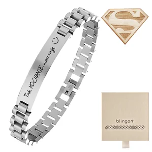 Bransoletka męska stalowa Z GRAWEREM elegancka sta Długość: 22,5 cm Szerokość: 0,9 cm Wymiary blaszki: 4,7 cm x 0,9 cm Waga: 38 g Skomponuj własny grawer Na biżuterii umieścimy Twój indywidualny grawer, który sprawi, że będzie ona wyjątkowa i niepowtarzalna! Ważne: