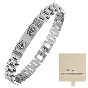 Bransoletka męska stalowa Z GRAWEREM elegancka sta Symboliczne znaczenie – Poczuj więź z bliskimi, nosząc przy sobie symboliczny grawer oczu, który wyraża uczucia głębsze niż słowa. Modny design – Zyskaj pewność siebie dzięki eleganckiej bransoletce, która łączy klasykę z nowoczesnym stylem i przyciąga spojrzenia. Trwałość na lata – Inwestuj w biżuterię, która przetrwa próbę czasu, zachowując swój blask i idealny wygląd dzięki stali chirurgicznej 316L. Idealny prezent – Podaruj niezapomniany prezent, który wyrazi Twoje uczucia i zostanie doceniony jako symbol troski i miłości. Długość: 22,5 cm Szerokość: