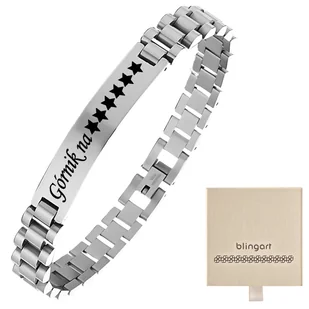 Bransoletka męska stalowa Z GRAWEREM elegancka sta Luksusowy wygląd i trwałość na lata – stal chirurgiczna 316L zapewnia nieskazitelny połysk i odporność na korozję, by bransoletka zawsze wyglądała jak nowa. Grawer z osobistym przesłaniem – centralna blaszka pozwala dodać inicjały, datę lub sentencję, tworząc biżuterię pełną emocji i znaczenia. Uniwersalny styl inspirowany zegarkiem – elegancki, męski design pasuje do garnituru, casualowych stylizacji i codziennych wyzwań. Wygoda i dopasowanie przez cały dzień – ruchome ogniwa i praktyczne zapięcie sprawiają, że bransoletka idealnie leży i łatwo się zakłada. Długość: 22,5 cm Szerokość: