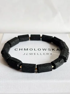 Bransoletka męska zrobiona została na gumce jubilerskiej z użyciem wysokiej jakości surowych turmalinów oraz pozłacanych przekładek. Turmalinowi przypisuje się magiczne znaczenie. Zalicza się on do kamieni ...