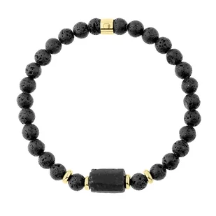 Bransoletka Męska z bryłą turmalinu i czarnymi kamieniami lawy.