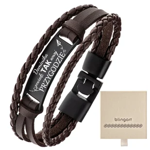 Bransoletka męska z GRAWEREM skórzana brązowa Biżuteria z duszą podróżnika – bransoletka z motywem kompasu lub innym grawerem zatrzyma w sercu wspomnienia z najpiękniejszych wypraw. Styl, który opowiada historię – połączenie brązowej skóry naturalnej i matowej stali podkreśla męski charakter i indywidualny styl podróżnika. Grawer z osobistym przesłaniem – blaszka i zapięcie to idealne miejsca na wyjątkowy grawer, który przypomni o ważnej chwili, miejscu lub osobie. Komfort i trwałość na każdą przygodę – miękka skóra dopasowuje się do nadgarstka, a technologia PVD zapewnia intensywny kolor i odporność na ścieranie. Długość: 21 cm Szerokość: