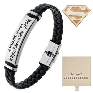 Zestaw Bransoletka Męska Regulowana Z Grawerami, Czarne Zapięcie, Versatile