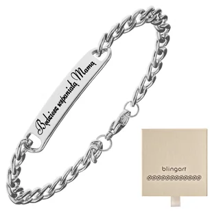 Długość: 19 cm Szerokość: 6 mm Grubość: 1 mm Wymiary blaszki: 4 cm x 0,8 cm Waga: 11 g Skomponuj własny grawer Na biżuterii umieścimy Twój indywidualny grawer, który sprawi, że będzie ona wyjątkowa i niepowtarzalna! Ważne: