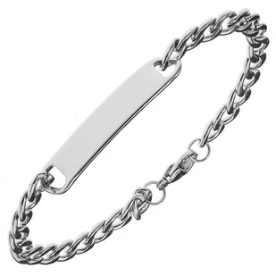 Bransoletka męska z GRAWEREM stalowa pancerka Bransoletka męska z GRAWEREM stalowa pancerka Klasyczna stalowa bransoletka z blaszką to obowiązkowa pozycja w stylizacji każdego stylowego mężczyzny. Sprawdzi się niezależnie od okazji. Doskonale będzie wyglądała zarówno w casualowym wydaniu jak i tym bardziej eleganckim. Wykonana została z najwyższej jakości stali chirurgicznej wypolerowanej na wysoki połysk. Splot typu pancerka.