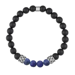 Bransoletka męska z kamieniami czarnymi kulkami onyksu i niebieskim lapisem