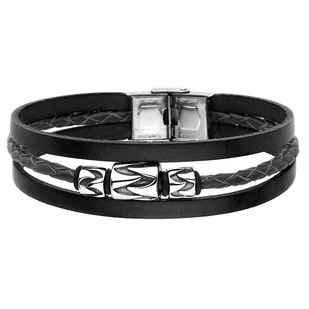 Bransoletka Męska ze skóry naturalnej. Męska bransoletka wykonana z pasków i rzemienia ze skóry naturalnej w kolorze czarnym. Zapięcie oraz trzy beadsy to na...