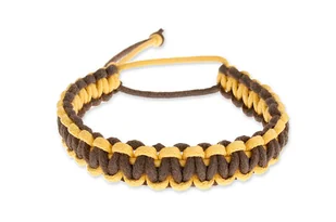 Polska Kolor: brązowy, żółty Materiał: sznurek jubilerski woskowany Szerokość: 1,2 cm Obwód: uniwersalny regulowany, min.