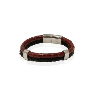 Bransoletki od EM Men's Accessories to produkowane w Polsce unikatowe dodatki, które będą będą doskonałym uzupełnieniem stroju każdego eleganckiego mężczyzny. Szeroka oferta naszych produktów pozwala na dobranie zarówno idealnej biżuterii dla siebie jak i znalezienie wspaniałegoupominku. Prezentowana bransoletka skórzanaczarno-bordowa ze stalowym zapięciem od EM Men's Accessoriesstanowi dopełnienie eleganckiego outfitu. Wykonana została z niezwykłą starannością o każdy szczegół. Materiał: skóra bydlęca- trwały rodzaj skóry, odporny na uszkodzenia mechaniczne, zadrapania i wgniecenia; stal Dom