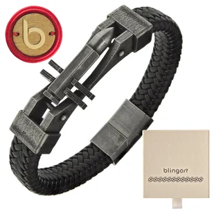 Bransoletka skórzana męska oksydowana czarna nabój Wyróżnij się w tłumie z wyjątkową bransoletką! Jej niepowtarzalny wzór przyciąga wzrok i podkreśla Twoją indywidualność. Centralny element przypominający pocisk lub nabój symbolizuje siłę i determinację – idealny dla tych, którzy nie boją się realizować swoich marzeń. Ciesz się komfortem i jakością dzięki szerokiej plecionce z naturalnej skóry, która jest nie tylko trwała, ale także stylowa. Modne zapięcie magnetyczne gwarantuje wygodę użytkowania, pozwalając Ci szybko zakładać i zdejmować bransoletkę, a jednocześnie zapewniając pewne trzymanie. Elementy stalowe, poddane procesowi oksydacji, nadają biżuterii oryginalną, nieregularną barwę, która przyciąga spojrzenia i dodaje charakteru.