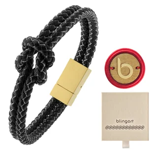 Bransoletka SKÓRZANA męska pleciona WĘZEŁ stal kol Styl, który wyróżnia z tłumu – kontrast czerni i srebrnej nici w połączeniu z efektownym węzłem przyciąga wzrok i podkreśla indywidualność. Luksus na co dzień – stal chirurgiczna z powłoką z 24-karatowego złota nadaje elegancji, którą możesz nosić na co dzień bez obaw o trwałość. Bezpieczeństwo i wygoda noszenia – zatrzaskowe zapięcie daje pewność, że bransoletka zostaje na miejscu nawet podczas aktywnego dnia. Wyjątkowy przekaz w grawerze – możliwość personalizacji sprawia, że bransoletka staje się pamiątką pełną emocji i osobistego znaczenia. Długość: 21 cm Szerokość: