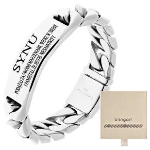 Bransoletka z GRAWEREM męska BLASZKA masywna PANCE ✴️ Więź jaka łączy Cię z synem daje poczucie dumy i szczęścia, widząc, jak rośnie i staje się niezależnym, pełnym pasji człowiekiem. ✴️ Personalizowana biżuteria to sposób, by wyrazić, jak wiele znaczy dla Ciebie, będąc częścią Twojego świata i serca. ✴️ Niech podarowana biżuteria będzie symbolem wyjątkowej więzi i towarzyszy Twojemu Synowi na każdym etapie jego życia przypominając mu o tym co ważne. Obwód wewnętrzny: 22,5 cm Szerokość: