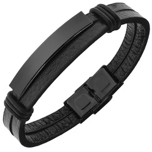 Bransoletka z GRAWEREM męska / damska skórzana bla Bransoletka z GRAWEREM męska / damska skórzana blaszka stal Bransoletka skórzana czarna o modnym klasycznym wzorze. Wykonana jest z najwyższej jakości skóry naturalnej oraz stali chirurgicznej 316L. Składa się z dwóch pasków równej grubości oraz podłużnej blaszki umieszczonej na jednym z pasków. Po dwóch stronach blaszki znajdują się małe gumeczki wykonane z kauczuku medycznego, które pełnią funkcję ozdobą, a ponadto chronią brzegi blaszki przed zarysowaniami. Bransoletka posiada zatrzaskowe zapięcie, które jest nie tylko wygodne ale także gwarantuje, że bransoletka nie rozepnie się nieoczekiwanie.