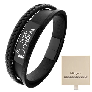 Bransoletka z GRAWEREM męska skórzana CZARNA stal Wyraża to, co czujesz – personalizowany grawer pozwala przekazać emocje i uczucia, których nie da się wyrazić słowami. Styl, który podkreśla męskość – połączenie czarnej skóry i stali tworzy mocny, nowoczesny look, który przyciąga spojrzenia. Jakość na lata – naturalna skóra i stal chirurgiczna 316L gwarantują trwałość, wygodę i odporność na codzienne użytkowanie. Uniwersalny prezent z przesłaniem – idealny na każdą okazję, by pokazać, jak bardzo Ci zależy – i to w naprawdę stylowy sposób. Długość: 22 cm Szerokość:
