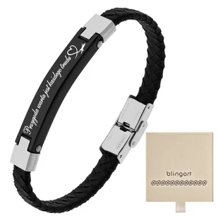 Bransoletka z GRAWEREM męska SKÓRZANA pleciona kol ✴️ Personalizacja: Możliwość wykonania indywidualnego graweru na blaszce pozwala stworzyć wyjątkowy i osobisty prezent. ✴️ Elegancki i trwały design: Połączenie plecionej skóry naturalnej i polerowanej stali chirurgicznej 316L zapewnia stylowy wygląd i długotrwałość. ✴️ Komfort noszenia: