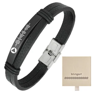 Bransoletka z grawerem skórzana męska czarna Muzyka, która budzi emocje – Grawerowany kod prowadzący do ulubionej piosenki natychmiast przeniesie Was do najpiękniejszych wspomnień, wywołując wzruszenie i uśmiech. Unikalny symbol Waszej więzi – Bransoletka z indywidualnym utworem to nie tylko biżuteria, ale też subtelny sposób na wyrażenie uczuć, które pozostaną na zawsze. Styl i elegancja na co dzień – Wysokiej jakości skóra naturalna i stal chirurgiczna 316L sprawiają, że bransoletka pasuje do każdej stylizacji i podkreśla wyjątkowy charakter. Trwałość i niezawodność – Anodowana blaszka i precyzyjne wykonanie gwarantują, że bransoletka zachowa swój elegancki wygląd przez długie lata, przypominając o ważnych chwilach. Prezent, który mówi więcej niż słowa – Idealny na rocznicę, Walentynki, urodziny czy spontaniczny gest miłości – podaruj bliskiej osobie coś naprawdę wyjątkowego.