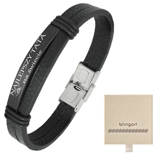 Bransoletka z grawerem skórzana męska czarna Wyjątkowa pamiątka – personalizowana bransoletka pozwoli Twojemu Tacie nosić blisko serca Waszą wspólną historię, wywołując wzruszenie za każdym razem. Unikalny wyraz uczuć – dzięki indywidualnemu grawerowi podarujesz coś więcej niż prezent – prawdziwe, osobiste wyznanie miłości i wdzięczności. Trwałość i komfort – najwyższej jakości skóra naturalna i stal chirurgiczna gwarantują, że bransoletka przetrwa długie lata, towarzysząc Twojemu Tacie w każdej chwili. Bezpieczeństwo i wygoda – zatrzaskowe zapięcie sprawia, że bransoletka idealnie dopasowuje się do nadgarstka, nie rozpinając się przypadkowo, co pozwala skupić się na wyjątkowych chwilach razem. Długość: 20 cm Szerokość: