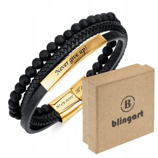 Bransoletka z GRAWEREM SKÓRZANA męska POZŁACANA blaszka koraliki potrójna
