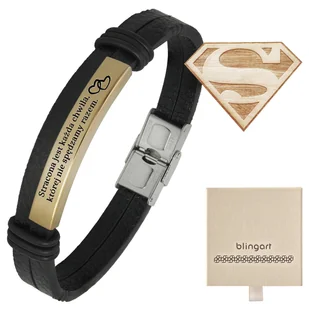 Bransoletka z grawerem skórzana męska pozłacana Długość: 20 cm Szerokość 1 cm Grubość: 3 mm Wymiary blaszki: 3,9 cm x 0,7 cm Waga: 11 g Skomponuj własny grawer Na biżuterii umieścimy Twój indywidualny grawer, który sprawi, że będzie ona wyjątkowa i niepowtarzalna! Ważne: