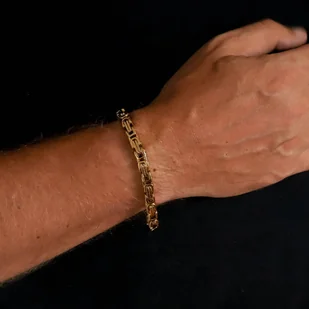 Bransoletka złota gruba męska splot królewski Szczegóły: Długość całkowita: 21 cmSzerokość: 6 mmSplot: królewski / bizantyjskiRegulacja: brakKolor: złotyTworzywo: