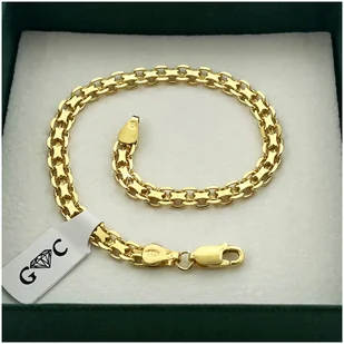 ➡️ BRANSOLETKA ZŁOTA MĘSKA 925/585 SREBRO BISMARK 22cm/5mm + GRAWER + Y Produkt najwyższej jakości ⭐⭐⭐⭐⭐ ✨ Przedstawiamy państwu stylową i elegancką bransoletkę o splocie bismark. Produkt został wykonany z najwyższej jakości srebra próby 925. Ten model bransoletki z pewnością doceni każda obdarowana osoba. Produkt jest solidny i wytrzymały, więc spokojnie posłuży długi czas. Bransoleta dodatkowo została pokryta 14 karatowym złotem próby 585.