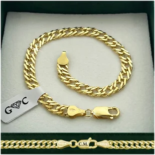 14k (pr. 585) Waga: 8,2 gram (+/- 1 gr) Zapięcie: karabińczyk (bardzo solidne) Najwyższa jakość wykonania Produkt antyalergiczny Produkt cechowany przez Państwowy Urząd Probierczy Próba 925. Kod wewnętrzny produktu: GHBRA 829B W zestawie: