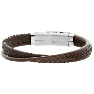 Kolor: Brązowy Materiał: stal szlachetna, skóra naturalna, rzemień naturalny Obwód wewnętrzny: ~19,5 / 20,0 / 20,5 cm PVD (Physical Vapour Deposition) - czyli tzw. fizyczne naparowywanie. Jest to obecnie najtrwalsza powłoka której metoda polega na umieszczeniu materiału bazowego (biżuteria) w atmosferze obojętnej (komora próżniowa) ogrzewanej do temperatury 400 °C i nanoszeniu pod ciśnieniem rozpylonych cząsteczek tlenków innych metali (w tym szlachetnych) na materiał bazowy.