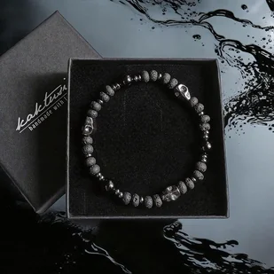 CZACHY :skulls : turmalin, lawa, hematyt : glam rock : męska bransoletka - Pakamera