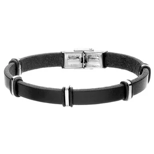 Bransoletka męska wykonana z czarnej naturalnej skóry i antyalergicznej stali szlachetnej 316L, zdobiona stalowymi ozdobami w stylu minimalistycznym w kolorze srebrnym. Kolor: czarny Materiał: stal szlachetna, skóra naturalna Obwód wewnętrzny: ~20 cm Wymiary: szerokość: 8mm PVD (Physical Vapour Deposition) - czyli tzw.