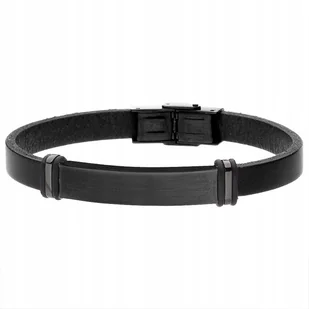 CZARNA MĘSKA BRANSOLETKA SKÓRA GRAWER DZIEŃ OJCA