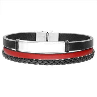 Czarno czerwona bransoletka męska ze skóry pod grawer.