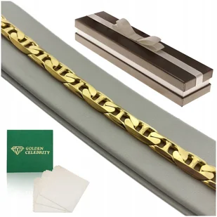 Dokonując zakupu na naszych aukcjach możesz być pewny że produkt, który otrzymasz będzie zgodny z opisem. ______________________________________________ Olśniewający blask, gładkość i wysoką trwałość łańcuszka osiągnięto dzięki zastosowaniu złocenia 14 karatowym złotem oraz ręcznemu polerowaniu. Bransoletka może być unikalnym dodatkiem dla każdego mężczyzny. Świetnie sprawdzi się również na prezent dla bliskiej Ci osoby. Co wyróżnia naszą markę? ❇️ Oryginalne produkty najwyższej jakości - gotowe na prezent ❇️ Marka Golden Celebrity oferuje od wielu lat unikalne, wyjątkowe i ponadczasowe wyroby jubilerskie ❇️ W naszej pracy łączymy pasję do pięknych przedmiotów, jubilerską wiedzę i znajomość modowych trendów ❇️ Zawsze chętnie służymy pomocą w wyborze produktu ❇️ 100% gwarancji satysfakcji i zadowolenia