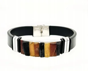 MĘSKA BRANSOLETA BURSZTYN SKÓRA STAL ELEGANCKA Witaj w naszym magicznym świecie bursztynu, gdzie historia spotyka się z elegancją, a tradycja splata się z no...
