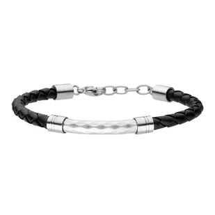 Męska bransoletka czarny pleciony rzemień ze zdobioną rurką.