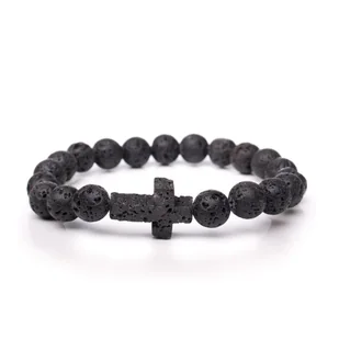 MĘSKA Bransoletka lawa wulkaniczna kamień naturalny koraliki + krzyżyk dla Wierzących Mężczyzn