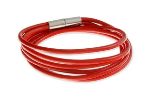 Bransoletka z magnesem skórzana Bransoletka wykonana z czerwonych rzemieni. Wykonana z lakierowanej skóry. Zapięcie w postaci magnesów. ✔ Produkt jest dostęp...