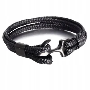 4 mm Szerokość bransolety: 12 mm Wymiary kotwicy: 30x21 mm Waga: 17 g Wykończenie: skórzane, plecione rzemyki w kolorze czarnym, błyszczące, wypolerowane zapięcie oraz kotwica ze stali 316L* Bransoletka jest w rozmiarze uniwersalnym.