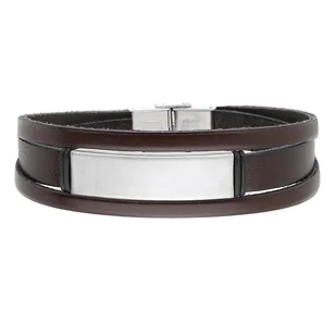 Męska bransoletka skórzane brązowe rzemienie ze stalową blaszką.