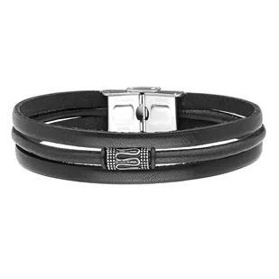 Bransoletka wykonana z czarnych skórzanych pasków ze skóry naturalnej z etnicznym beadsemi i zapięciem ze stali szlachetnej. Kolor: czarny Materiał: stal szlachetna, skóra naturalna Obwód wewnętrzny: ~20 cm PVD (Physical Vapour Deposition) - czyli tzw. fizyczne naparowywanie.