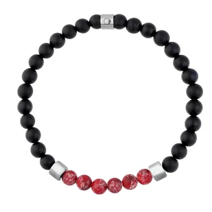 Męska bransoletka z koralikami czarnego onyksu i czerwonym jaspisem.