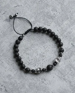 Męska bransoletka z lawy z czaszkami II - Pakamera
