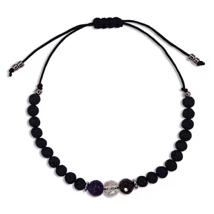Męska bransoletka ZNAK ZODIAKU WODNIK - z kamieniami naturalnymi Ta wyjątkowa biżuteria wykonana jest z czarnej nylonowej nici o grubości 0,8 mm. Po środku u...