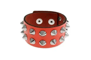 Bransoletka z kolcami hematytowy Bransoletka ze skóry nabijana trzema rzędami ćwieków. Kolor czerwony, kolce okrągłe w kolorze hematytu. Regulowany obwód. ✔ ...