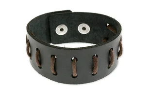 Bransoletka na Napy skórzana Bransoletka ze skóry w kolorze czarnym przeplatana brązowym sznurkiem. Metalowe napy. Dwustopniowe zapięcie. ✔ Produkt jest dost...