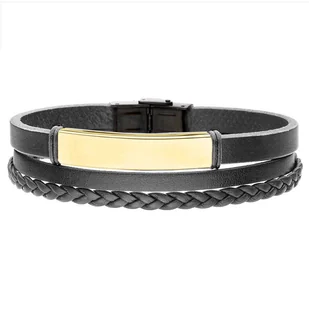 Bransoletka wykonana jest ze skóry naturalnej w kolorze czarnym z pozłacaną blachą umieszczoną centralnie. Pozłacana trwałą i innowacyjną metodą PVD. Czarń z dodatkiem złota to klasyczna elegancja, która sprawdza się zawsze. Prosta forma doskonale nadaje się do personalizacji. Kolor: czarny, złoty Materiał: